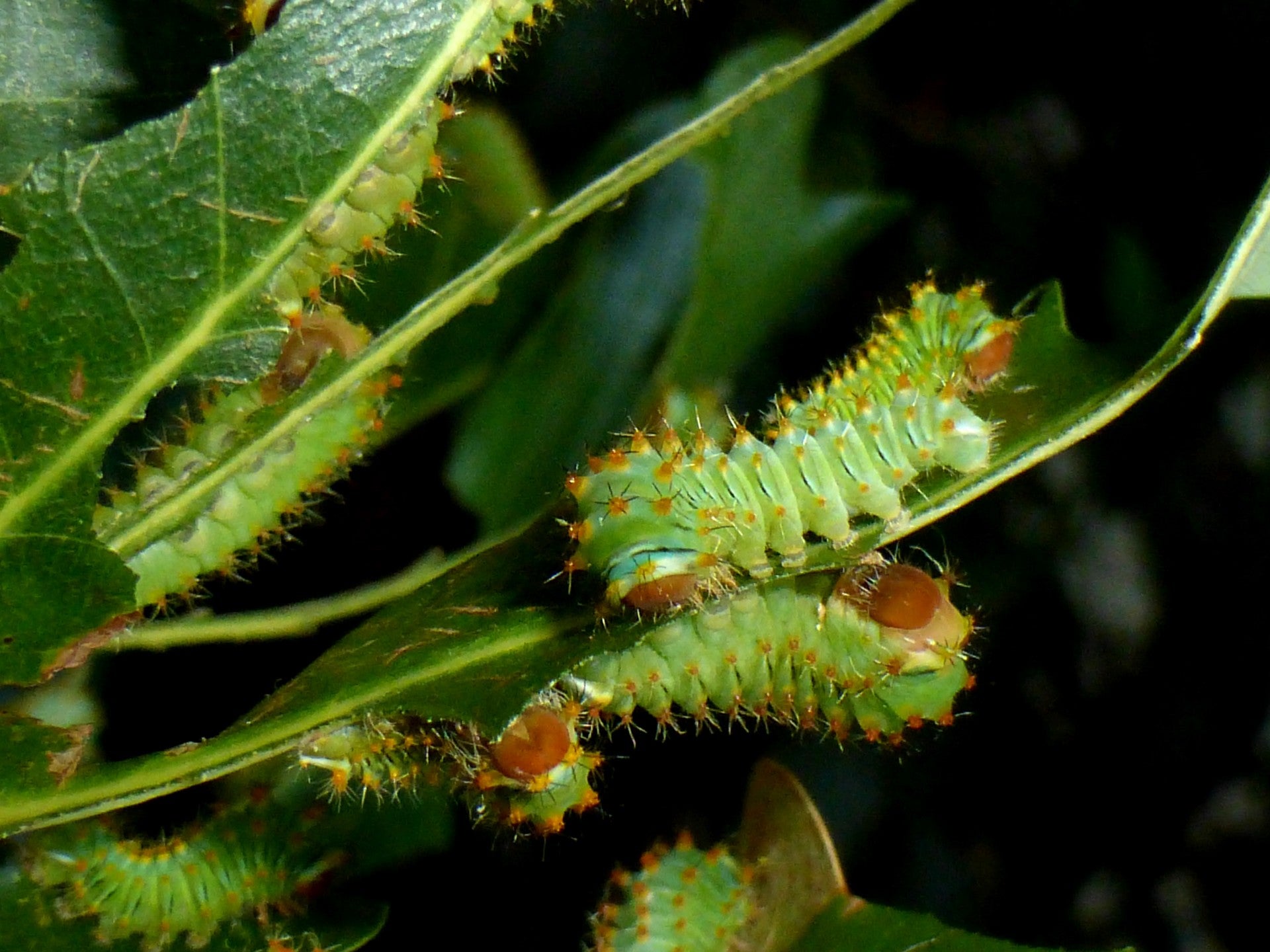 More difficult then the related polyphemus. Keep very warm and dry in spacious very well ventilated plastic containers (watch out for condensation). Keep very clean (daily cleaning !). Do not overcrowd so that every caterpillar has space to develop. Fast growing and ready to pupate within 4 to 5 weeks. The cocoons can overwinter in an unheated (but frost free) room. Make sure accidentally emerging moths have enough space to inflate there wings. When temperatures in autumn remain too high, moths can emerge as late as November.